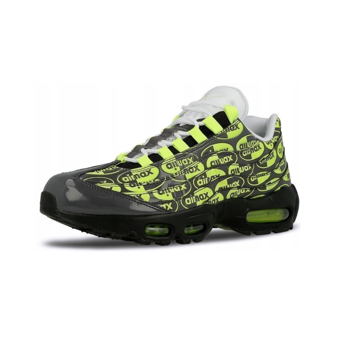 Inspired by the look of the Air Max 95?s OG neon color palette, this iteration of the 90s runner implements the iconic Air Max logo in a Volt hue as part of a repeated design on the upper. Contrasting grey undertones emerge on the leather formation. The OG midsole remains intact, with the Neon hues prevalent on the visible Air Max cushioning units.